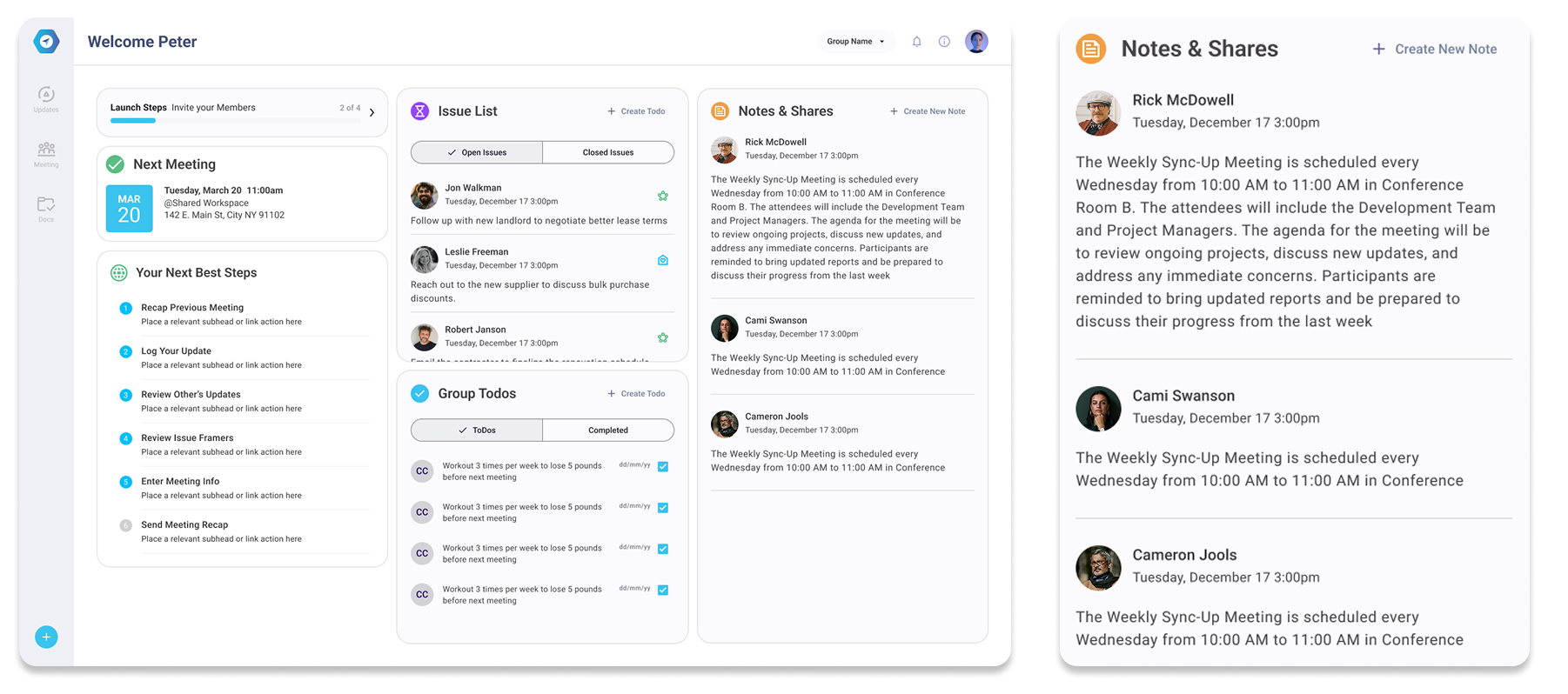 Request a DemoPGT automates scheduling and reminders, helps members prepare with structured updates, tracks issues, decisions, and follow-through—all within your desired framework.
